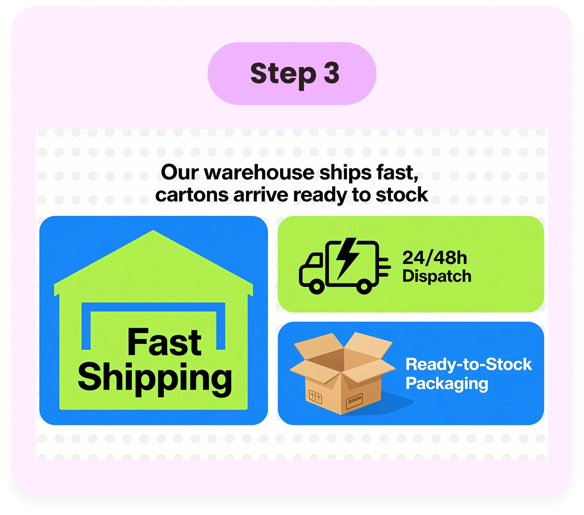 Clear MOQ · Faster Shelves · Secure Shipping